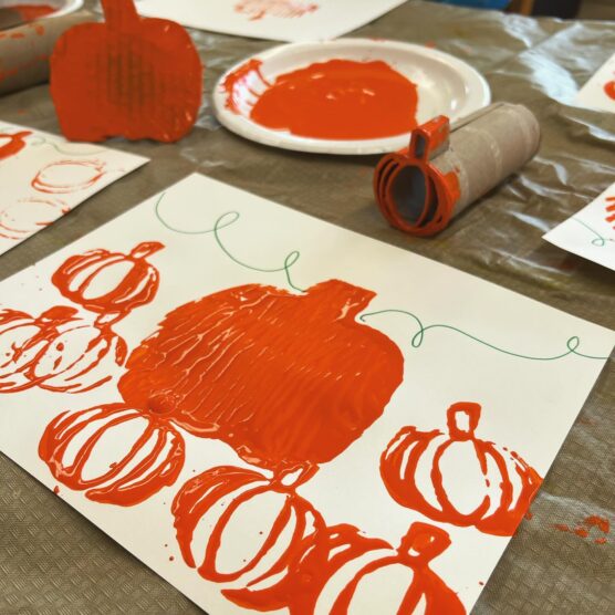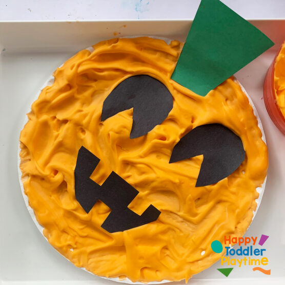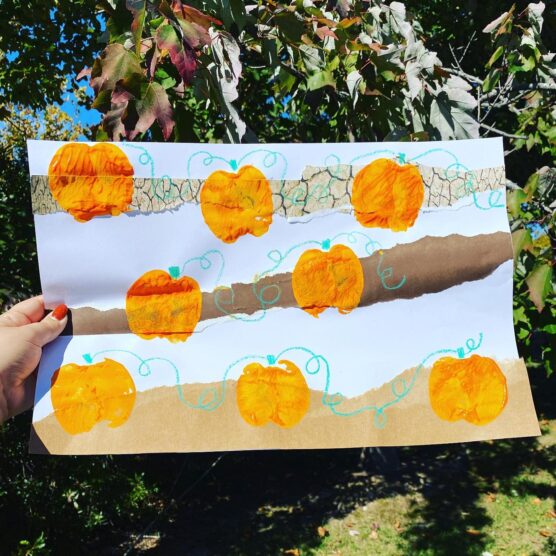 Three-dimensional puffy paint pumpkins have such wonderful texture that kids can’t resist touching them! The raised, bumpy surface looks so realistic and feels amazing under little fingers. These pumpkins seem to pop right off the paper with their dimensional quality, and the bright orange color is so vibrant and happy.