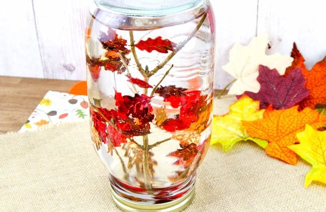 The contained autumn scene brings the beauty of the season indoors in a way that can be enjoyed year-round. Kids are fascinated by how the leaves dance and settle, creating different scenes each time, like having their own personal autumn storm.
