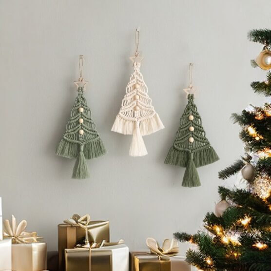 2. Macrame Christmas Tree Wall Hangings