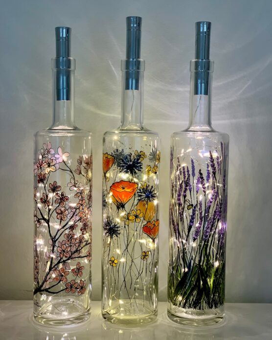 Whether painted with snow-covered trees, delicate snowflakes, or bold geometric designs, each bottle becomes a unique lamp that adds ambiance to your holiday entertaining.