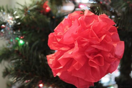 These fluffy balls add soft texture to your holiday decor. Stack several sheets of tissue paper together and accordion-fold them lengthwise. Tie the center tightly with string or wire, leaving extra for hanging. Cut the ends into rounded or pointed shapes. Carefully separate each layer of tissue paper, fluffing it outward to create a full, round pom-pom.