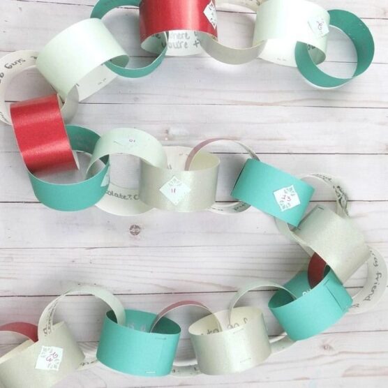 Count down to Christmas with this interactive paper chain. Make a chain of 24 or 25 loops, one for each day leading up to Christmas. Write activities, treats, or messages inside each loop before sealing it. Each day, tear off one loop and complete the activity or enjoy the surprise inside. Ideas include “make hot cocoa,” “watch a Christmas movie,” or “call someone you love.”