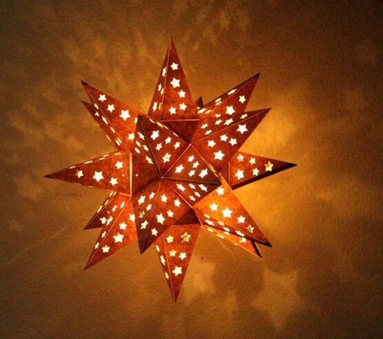 Hang them near windows where sunlight can illuminate them during the day, or place them near string lights for evening ambiance. The angular shapes and interplay of light and shadow make these stars look more complex than they actually are to make.