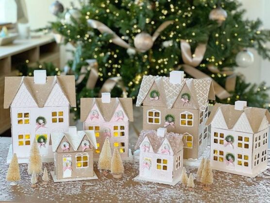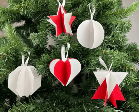 Use traditional red, green, and white, or try metallic tissue paper for extra sparkle. Hang them in windows, from light fixtures, or on the tree. They’re incredibly lightweight and create beautiful visual impact with minimal materials.