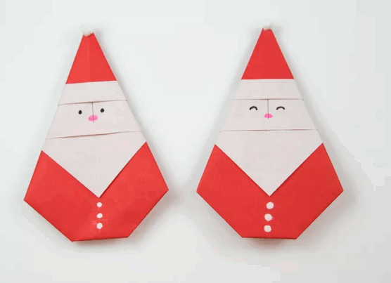 These little folded Santas are adorable and surprisingly easy once you get the hang of the technique. Start with red origami paper or any red square. Follow basic origami folding steps to create Santa’s body and hat, then add a small white paper beard and face details with markers.