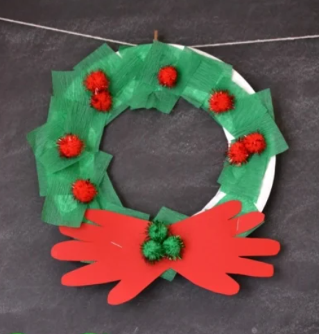 Paper plates provide the perfect base for festive wreaths. Cut out the center of a paper plate, leaving just the rim. Cover this ring with torn pieces of green tissue paper or construction paper to create a leafy texture. Add red paper berries, a big red bow, or other decorative elements. You can also use handprints cut from green paper and arranged around the ring for a kid-friendly version.