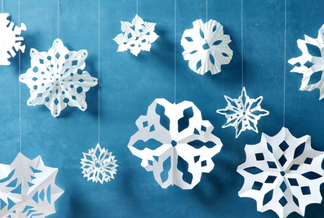 These classic decorations never go out of style. Fold white or blue paper into quarters or eighths, then cut out different shapes along the edges and folds. When you unfold the paper, you’ll reveal intricate, symmetrical snowflake designs. Each one turns out unique depending on your cuts. Make them large for windows or tiny for hanging on the tree. The best part is experimenting with different folding techniques and cut patterns to create everything from simple geometric shapes to elaborate lacy designs. Hang them with clear thread for a floating effect.
