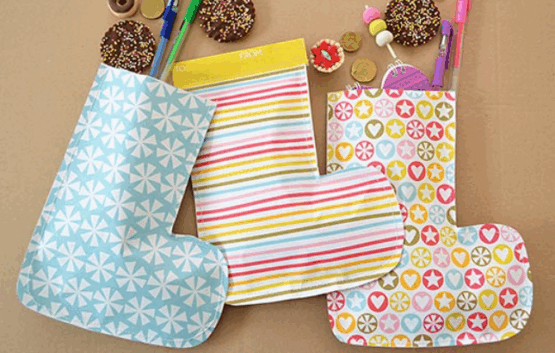 Use them as advent calendar pockets, place card holders at holiday dinners, or party favors. Kids can make personalized stockings for each family member. The paper versions are lighter and easier to work with than fabric.