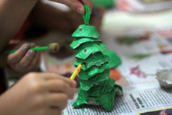 Top with a small star. Paint the entire tree or leave some of the cardboard showing for a rustic look. These recycled material trees are surprisingly charming and teach kids about reusing materials. They’re also quite sturdy once the glue dries.