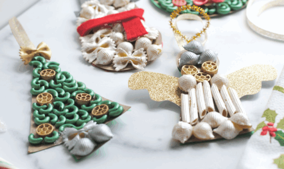 Arrange different pasta shapes like bow ties, wheels, or shells into a tree shape on wax paper. Start with a star-shaped pasta at the top, then layer larger pieces as you work down to create a triangular form. Glue each piece in place carefully. Once completely dry, spray paint the entire creation gold, silver, or green.