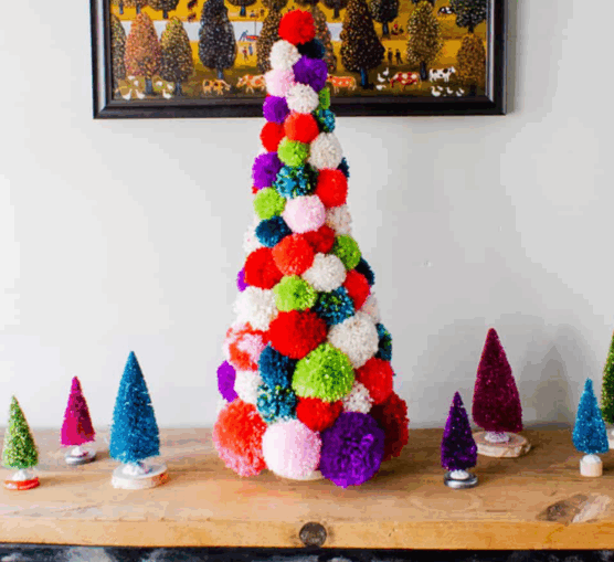 Add a larger pom-pom or a small star on the very top. These fluffy trees look adorable on mantels or as table centerpieces. The soft, textured surface catches the light beautifully and adds a cozy touch to your holiday decor.