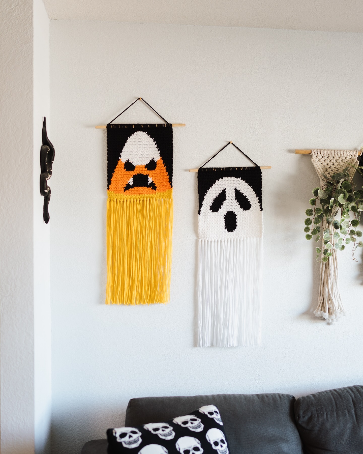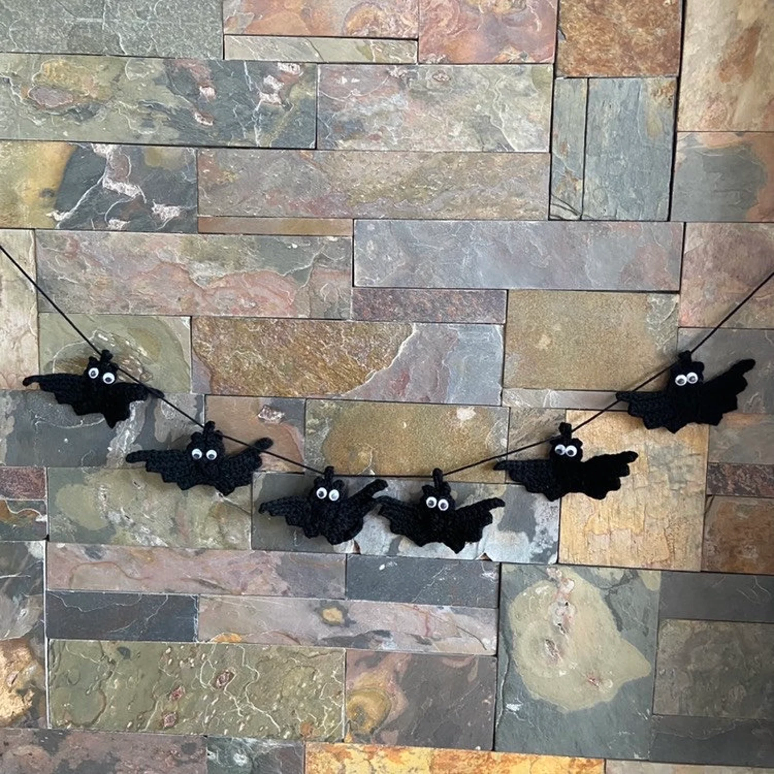 Each little bat in this garland has outstretched wings that create lovely shadows when hung in windows or along walls. The simple silhouette pattern makes them instantly recognizable, while the black yarn gives them that classic spooky look. String them close together for a dramatic effect or space them out for subtle Halloween touches throughout your home. They’re lightweight enough to hang from Command strips without damaging walls. The pointed wing tips and rounded bodies create perfect bat proportions.