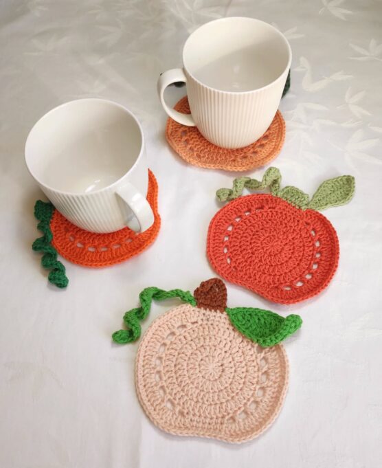 These round coasters perfectly capture the ribbed texture of real pumpkins, with orange yarn worked in raised ridges that radiate from the center. A small green stem on top completes the pumpkin illusion while providing a cute textural detail. They’re thick enough to protect furniture from condensation while being easy to wash when needed. The bright orange color adds cheerful Halloween spirit to your coffee table or dining room. Make a set of six or eight for entertaining guests.