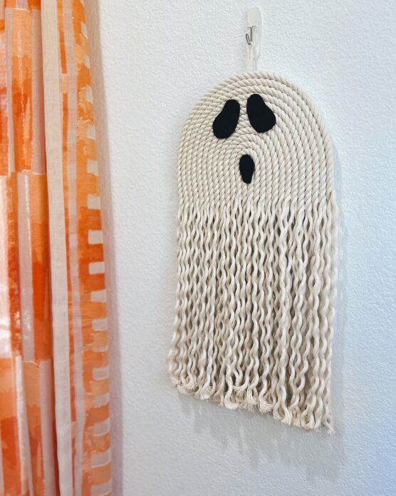 Picture ethereal white spirits floating gently in your doorway as guests arrive. This curtain features multiple ghost shapes hanging at varying lengths, creating a hauntingly beautiful entrance. The lightweight cotton yarn catches the breeze perfectly, making your ghosts appear to dance and sway naturally. Each ghost has a simple but expressive face that’s more cute than scary, making it perfect for family-friendly Halloween fun. The curtain rod pocket at the top makes hanging a breeze.