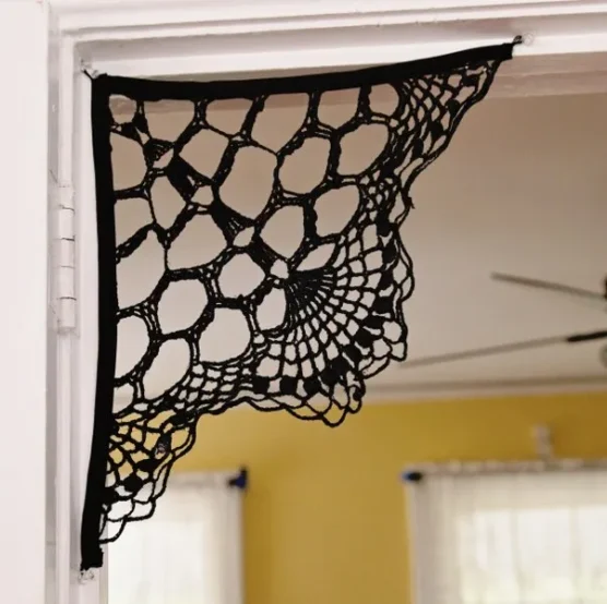 These intricate doilies bring gothic elegance to your Halloween table setting. Worked in black or dark gray thread, they capture the delicate beauty of actual spider webs with their geometric patterns and open lacework. Place them under candles or Halloween centerpieces to create dramatic shadows on your table. The fine thread work gives them an heirloom quality that makes them special enough to bring out year after year. They’re surprisingly sturdy despite their delicate appearance.