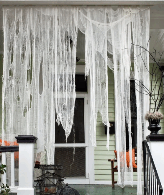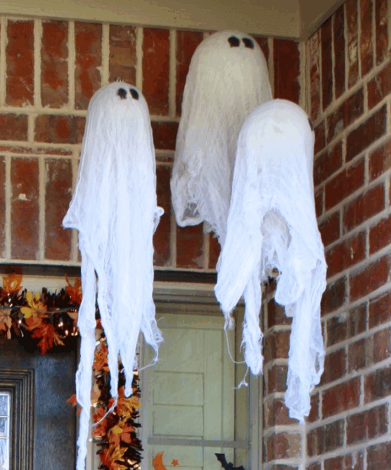 3. Cheesecloth Ghosts Hanging from Porch Ceilings