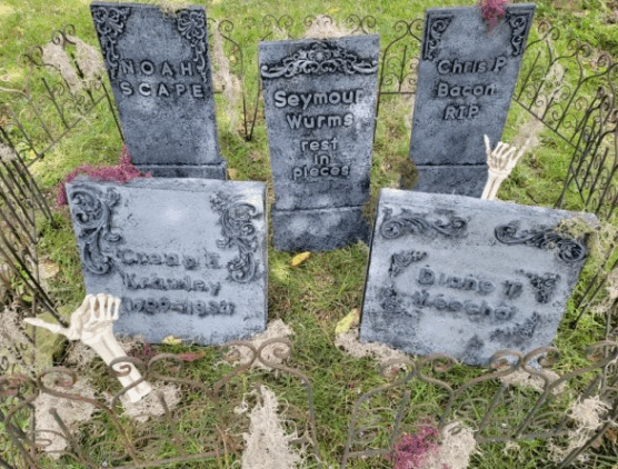 Their lightweight build makes it easy to shift and arrange them into a spooky graveyard display. Angle a few as if they’ve sunk into the earth, and finish with hand-painted epitaphs for a mix of fright and fun.