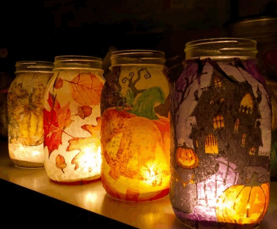 5. Mason Jar Luminaries with Spooky Silhouettes