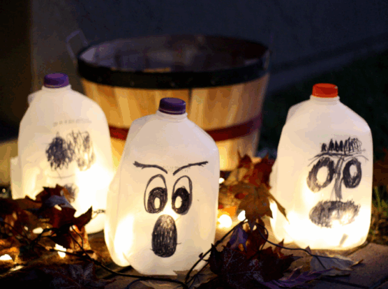 11. Milk Jug Ghost Lanterns with Battery Lights