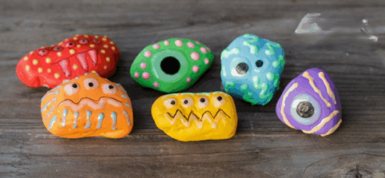 Different sized rocks become different types of monsters – small ones are creepy crawlers while larger stones become sleeping giants. The permanent paint job means they can stay outside all season, and their natural weight keeps them positioned exactly where you want them.