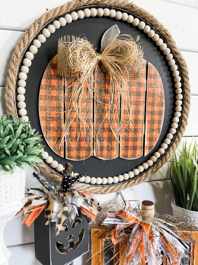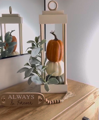 This creates such a cute focal point for your seasonal decorating and brings that farm stand feel right into your home. It’s perfect for mantels, shelves, or anywhere you want fall personality.