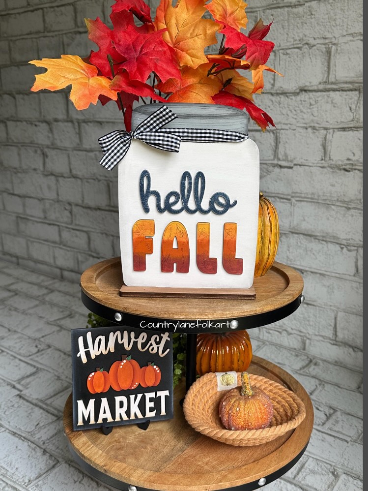 Cut mason jar shapes from Dollar Tree wood pieces and paint them to look like real jars! Add fall elements like painted flowers, leaves, or even small three-dimensional accents. These flat signs are perfect for wall hanging and take up much less space than real mason jars.