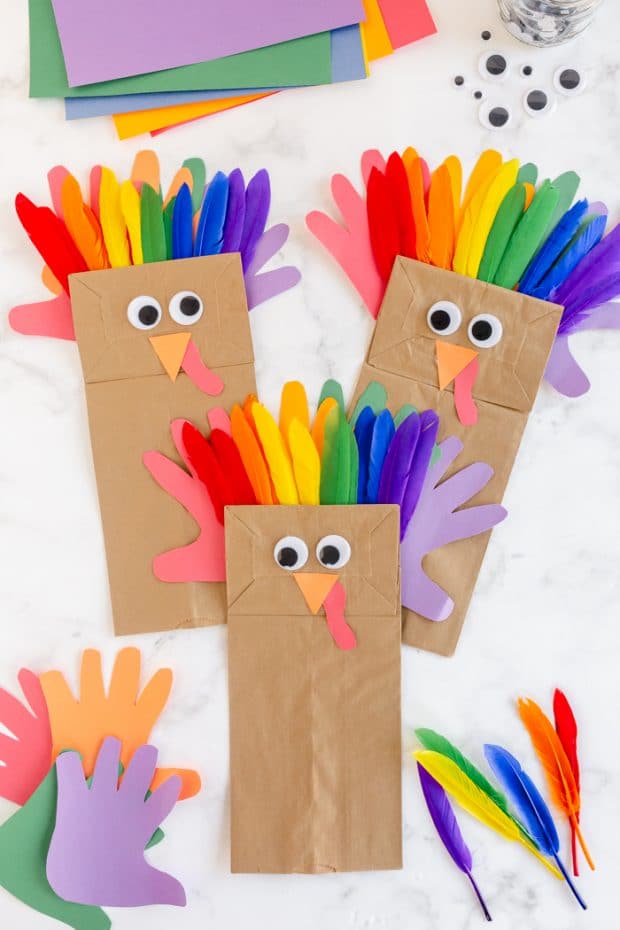 These silly turkeys come alive with wobbly construction paper feathers that flutter with every movement. Brown paper bags become plump turkey bodies with bright orange beaks and red wattles that bounce when little hands make them talk.