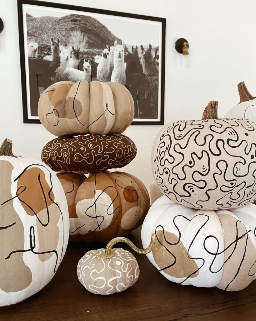 This modern take on pumpkin decor is perfect for the trendy millennial and Gen Z market! Paint the ceramic pumpkins using soft pastels like beige, dusty brown, and cream instead of traditional orange.