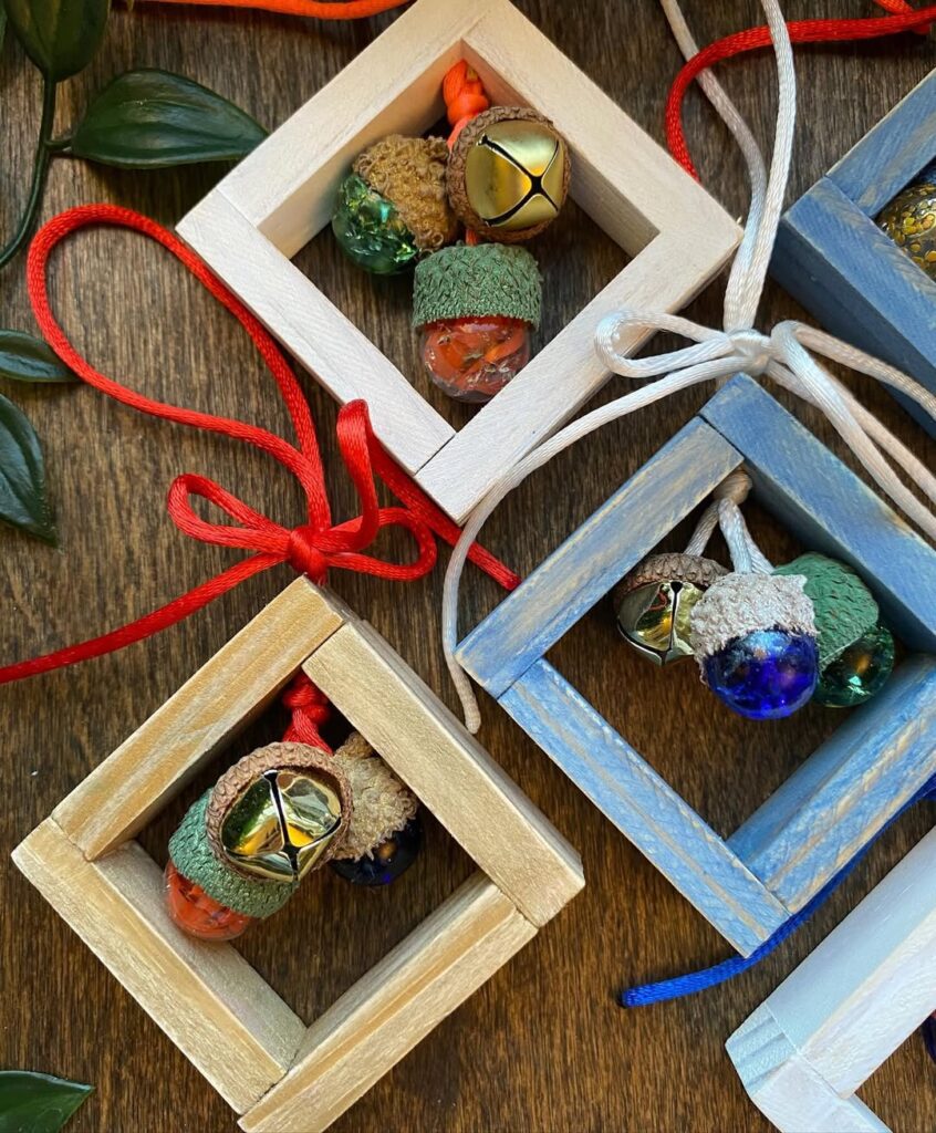 Small, detailed crafts often have great profit margins because people perceive high value in intricate work! Create tiny acorn charms from polymer clay, wood, or even real acorns that you’ve preserved and decorated. These can be keychains, bag charms, or ornaments. The miniature size makes them perfect impulse buys at $5-12 each, and materials cost just pennies. You can make many at once, and they’re perfect for craft fairs where people want affordable, seasonal gifts.