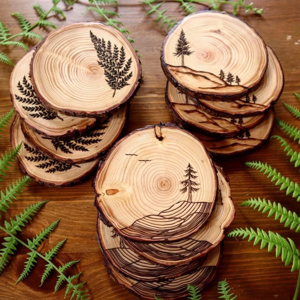 Pyrography designs on wooden coasters create such beautiful, artistic pieces that are both functional and decorative! The wood burning technique adds rich, dark designs that show off the natural wood grain beautifully. Fall motifs like leaves, pumpkins, or harvest sayings become permanent parts of the wood, creating heirloom-quality pieces. The natural wood finish and burned designs have that rustic, handcrafted appeal that’s so perfect for autumn entertaining. They protect your furniture while adding artistic style to your fall gatherings.