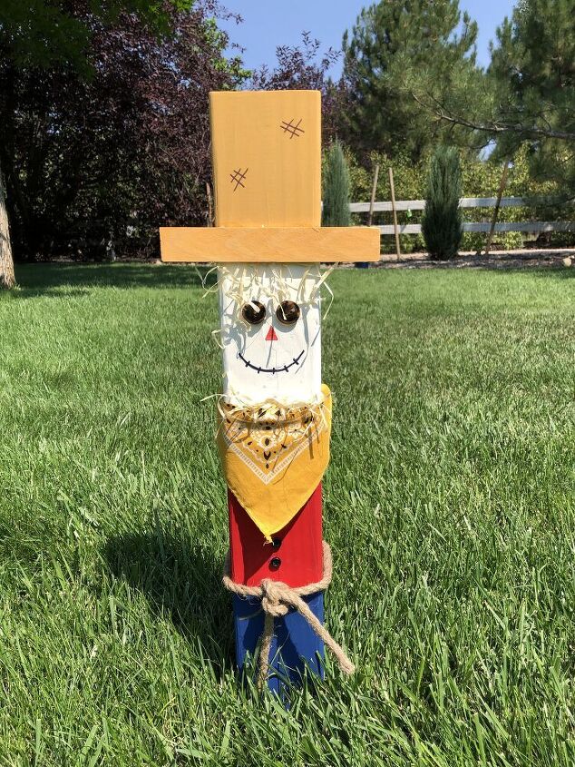 A full-sized scarecrow made from weathered barn wood or reclaimed fence boards has such authentic charm! The aged wood with its natural patina and worn edges tells a story, and when you add a simple painted face and maybe a burlap hat, it becomes this wonderful folk art piece. The rustic wood grain and weathered finish give it that genuine farmhouse feel that you just can’t get with new materials. It’s perfect for porches, gardens, or anywhere you want to add some whimsical fall personality.