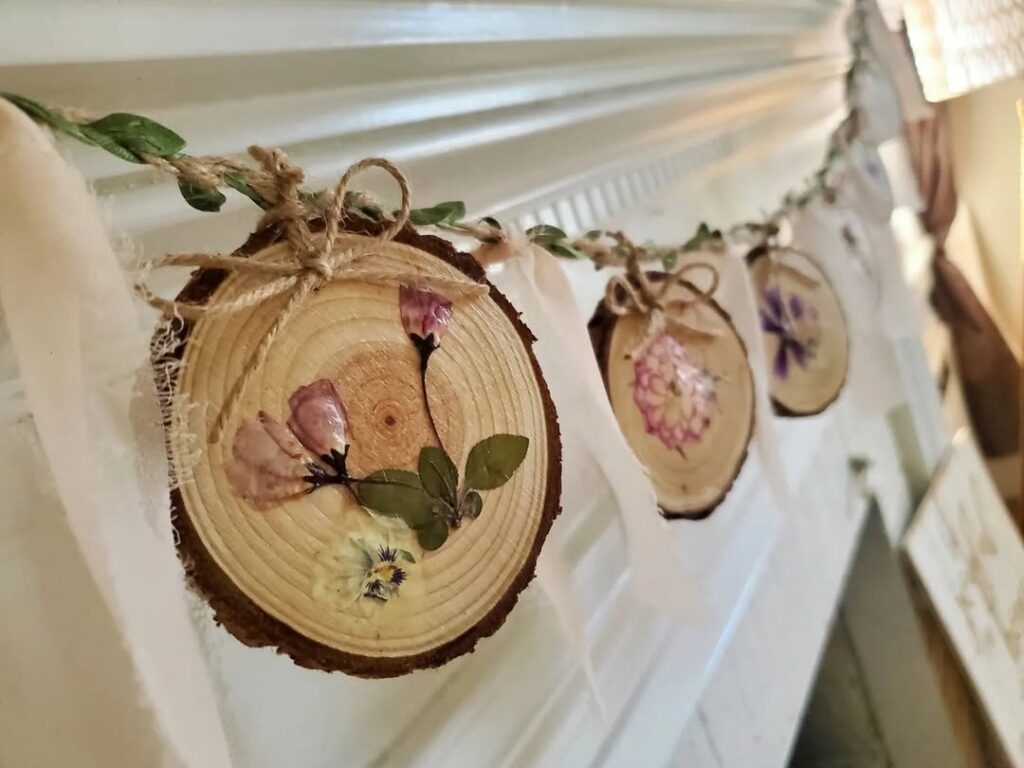 Stringing together wood slices creates such a beautiful, natural garland that captures the essence of autumn! Each slice shows off unique wood grain patterns, and you can paint them in fall colors or leave them natural for a more organic look. The round shapes and varying wood tones create lovely visual rhythm when hung across mantels, doorways, or windows. It brings that cozy cabin feeling indoors and works beautifully with other rustic fall decorations.