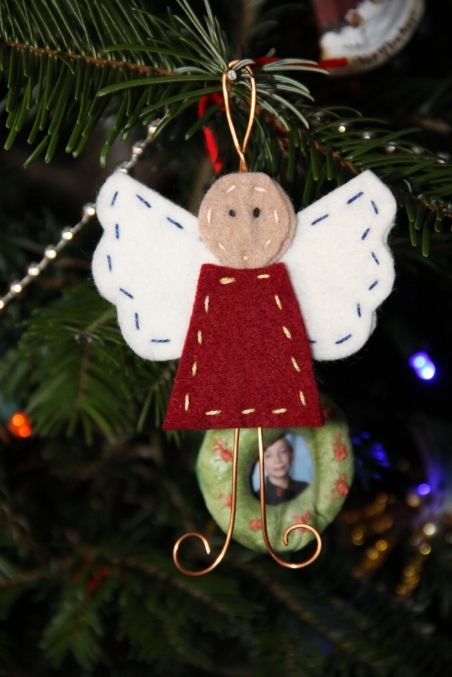 Add a small felt circle for the head. The combination of shimmering wire and soft felt creates a minimalist yet radiant angel that glows beautifully among your tree lights.