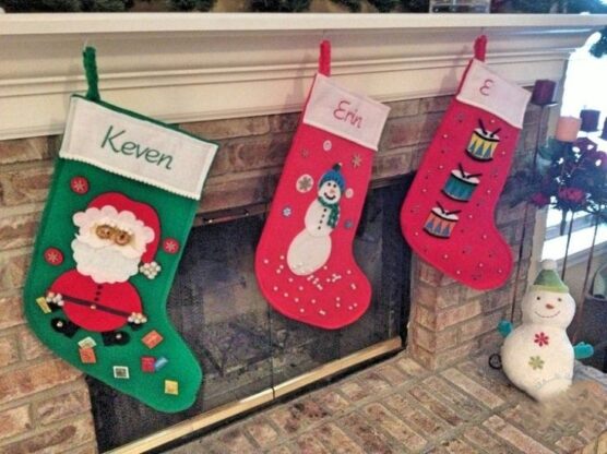 The special touch comes from embroidering names across the cuff with colorful thread, making each one unique for family members or friends. You can add a small loop at the back of the heel for hanging. Fill them with a bit of stuffing or leave them flat, depending on your preference.