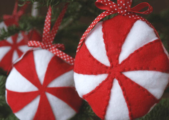7. Candy Cane Striped Felt Ornaments