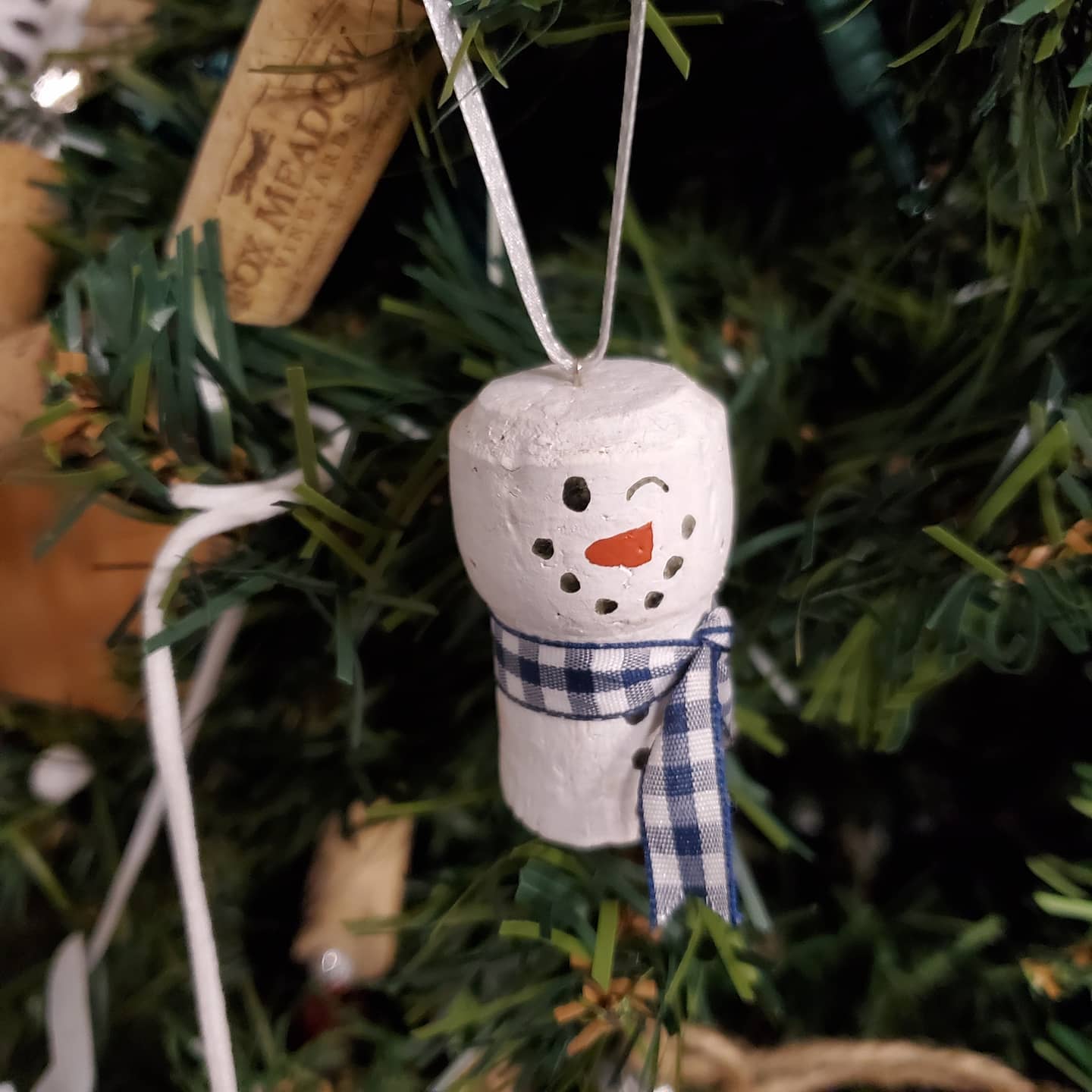 Stack three wine corks vertically and glue them together to form the snowman’s body. Paint the corks white and allow them to dry fully. Use a thin black marker or paint to add facial features and buttons. Wrap a small piece of ribbon, twine, or fabric scrap around the middle cork for a scarf. Make a tiny hat from felt or use a small bottle cap painted in a fun color. Attach a loop of string or ribbon to the top so you can hang it on your tree. These mini ornaments are perfect for wine lovers and make great gift toppers too.