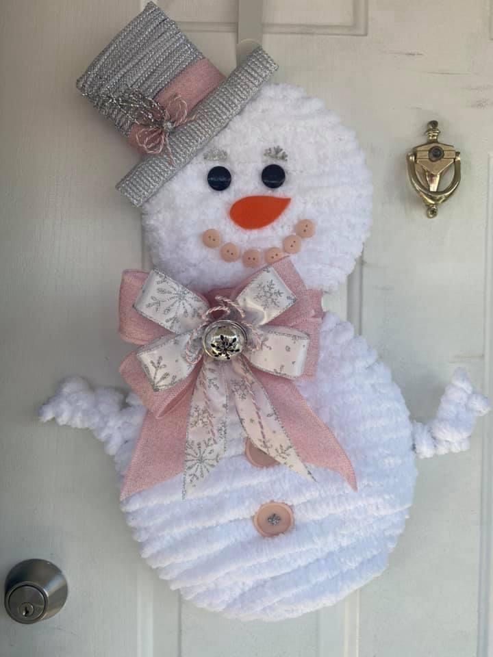 Cut out three white felt circles in graduating sizes and stack them vertically on a larger piece of felt or cardboard backing. Glue everything in place securely. Use black felt to cut out eyes, a mouth, and buttons, then glue them on. Add an orange triangle for the nose and colorful felt strips for a scarf. Cut out a black felt hat and attach it to the top. Punch a hole at the top of the backing and thread ribbon through to create a hanger. These cheerful door decorations welcome guests and add a festive touch to bedroom doors or walls throughout your home.