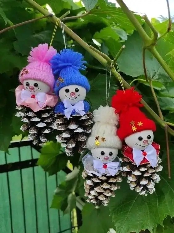 Find pinecones in a round, chubby shape rather than long thin ones. Paint the pinecone white, getting into the crevices as much as possible. Let it dry completely. Glue a small white pom-pom or wooden bead to the top for the head. Add tiny facial features with a marker or paint. Wrap a small strip of felt or ribbon around the middle for a scarf. You can add a tiny hat made from felt on top of the head. Glue on small twig pieces for arms if desired. These natural snowmen bring an organic, woodland feel to your winter decor and look great grouped together on a tray.