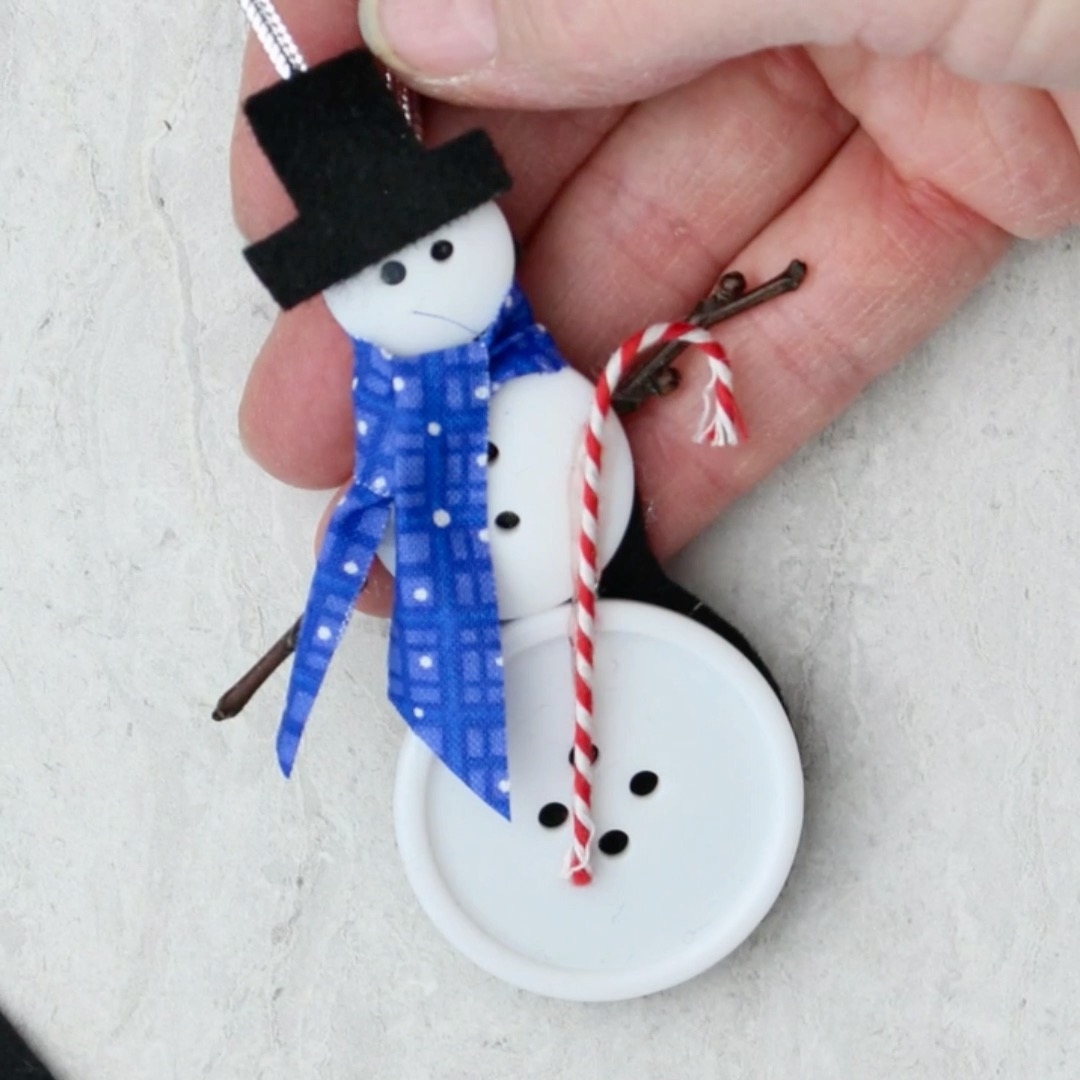 Arrange white buttons in three circles, creating a snowman shape. Glue each button down securely, overlapping them slightly to fill in the circles. Use black thread for the eyes, mouth, and buttons down the body. Create a scarf using ribbon or felt glued across the middle. Use fabric, felt, or more buttons to make a hat at the top. Frame your finished artwork or hang it as is. This craft gives you a chance to use up extra buttons from your craft stash while creating something decorative and dimensional.