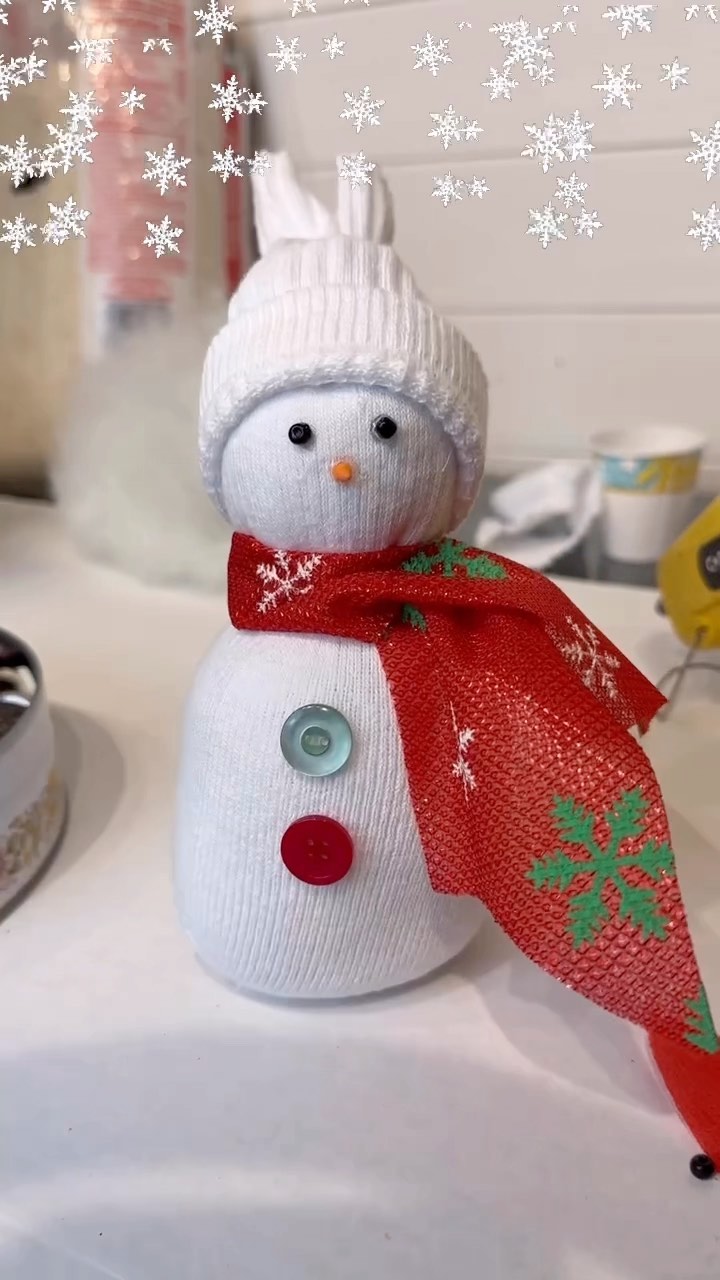 Grab a white sock and fill it with rice or stuffing to create the body. Tie off sections with rubber bands to make the head and body segments. Add buttons down the front by gluing or sewing them on. Cut a small strip of felt or fabric for a scarf and wrap it around the neck area. Use another sock or felt piece to make a tiny hat for the top. Draw or glue on eyes and a carrot nose made from orange felt. These chunky little snowmen look super cute sitting on shelves or windowsills, and kids love helping stuff the socks.