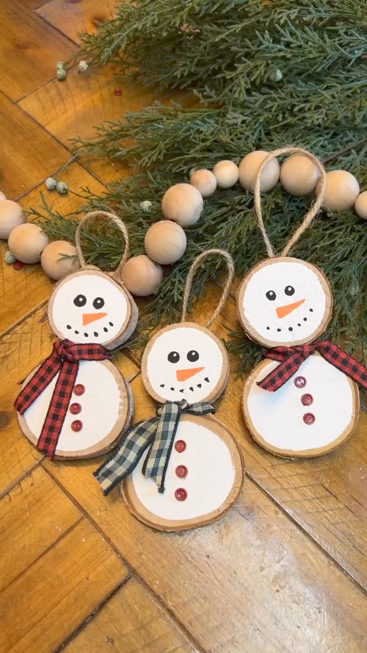 Find or purchase three wooden log slices in graduating sizes. Stack them from largest to smallest and glue them together vertically. Paint the wood white or leave it natural for a rustic look. Add facial features with paint or markers, and don’t forget the carrot nose. Use twigs for arms by drilling small holes in the sides or just gluing them on. Wrap twine or ribbon around the middle slice for a scarf. These rustic snowmen look beautiful displayed on a porch, mantel, or as part of a winter centerpiece with pinecones and greenery.
