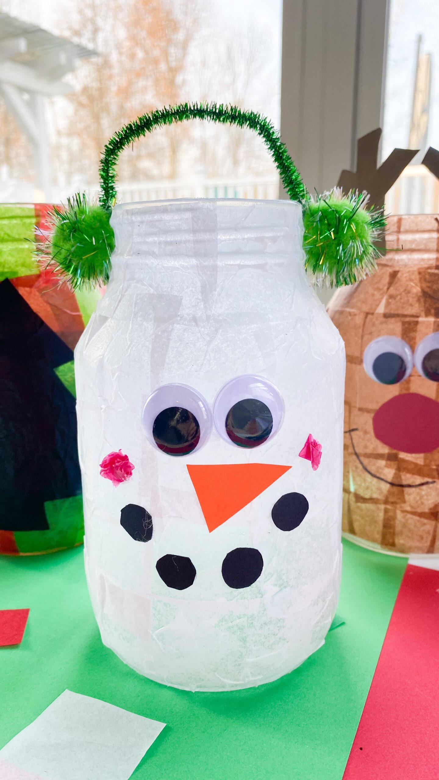 2. Mason Jar Snowman Luminaries with Painted Faces