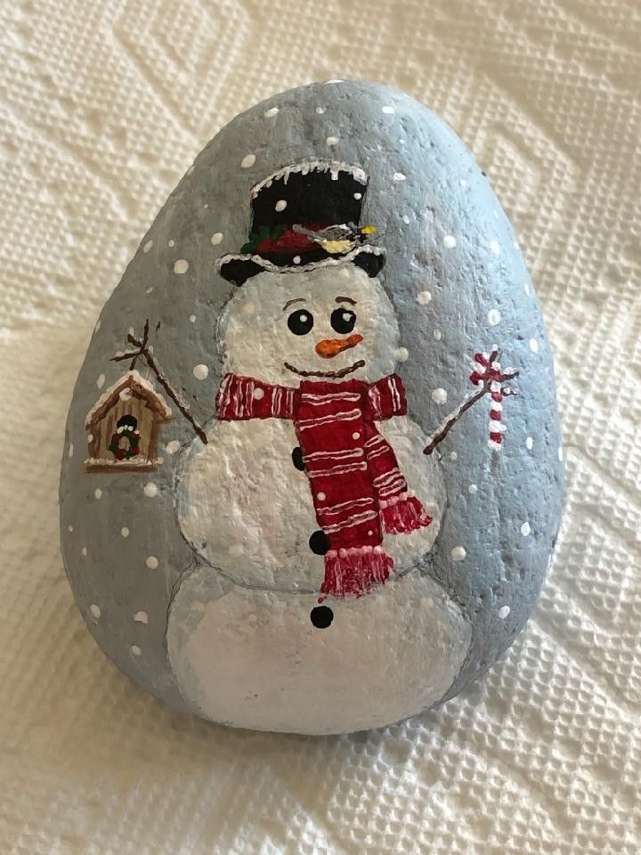 Find smooth, rounded rocks in different sizes at a craft store or outside. Clean them thoroughly and let them dry. Paint the rocks white as your base coat. Once dry, use acrylic paint to add classic snowman features like coal eyes, a carrot nose, and a smile. Paint on a colorful scarf and hat, or add buttons down the middle. Seal your finished snowman with a clear acrylic sealer to protect the paint. These make functional paperweights for desks or just cute decorations. Kids enjoy painting rocks, so this is a fun family activity for a winter afternoon.