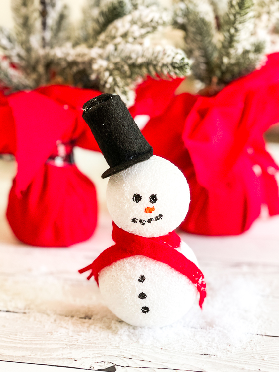 Purchase styrofoam balls in three sizes from a craft store. Stack them with the largest on the bottom and smallest on top, using toothpicks or wooden skewers to hold them together. Paint the balls white if needed or leave them as is. Push in black pins or beads for eyes and buttons. Add a small orange bead or paper cone for the nose. Wrap fabric or ribbon around the neck for a scarf. Use twigs for arms by poking them into the sides. Top with a small hat made from felt or fabric. These classic snowmen can be any size you want and look great on mantels.