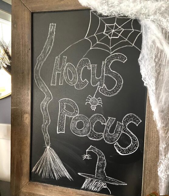 Elegant chalk lettering on slate or chalkboard surfaces creates changeable Halloween messages with vintage charm. The matte black background makes colored chalk pop beautifully, while the ability to erase and redesign keeps these pieces fresh throughout the season. Hand lettering adds personality and warmth that printed signs can’t match, while the informal nature of chalk writing feels approachable and friendly.