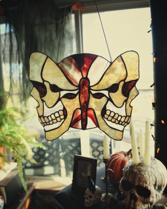 Translucent paints or films create beautiful faux stained glass windows with Halloween themes. When sunlight passes through, these clings cast colored light patterns that dance across your room. The rich colors—deep purples, glowing oranges, and mysterious blacks—create a cathedral-like atmosphere that’s both elegant and spooky.