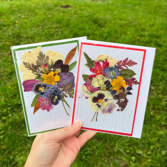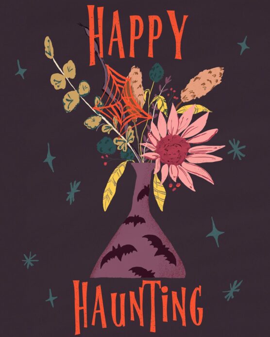 The pressing process preserves the plants’ beauty permanently, and no two cards will ever look exactly alike. Use handmade papers and calligraphy for an extra-special touch that elevates these beyond typical Halloween cards.