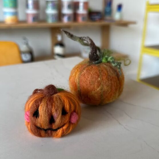 Soft, sculptural figures created through needle felting techniques bring three-dimensional Halloween characters to life with cozy, touchable appeal. The wool fibers create rich, matte colors and interesting textures that beg to be handled, while the handmade quality gives each figure personality and charm.