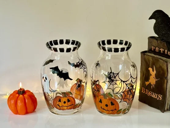 Special glass paints create permanent designs that won’t wash off, while techniques like reverse painting create depth and professional-looking results. These pieces serve practical purposes as flower vases while adding Halloween interest through their decorative painted surfaces.