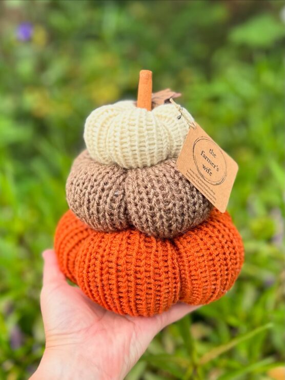 These fabric pumpkins are perfect for homes with small children since they’re completely safe, and they store easily for next year. Mix different yarn textures like chunky wool, smooth cotton, or fuzzy mohair for a collection that begs to be touched and admired.